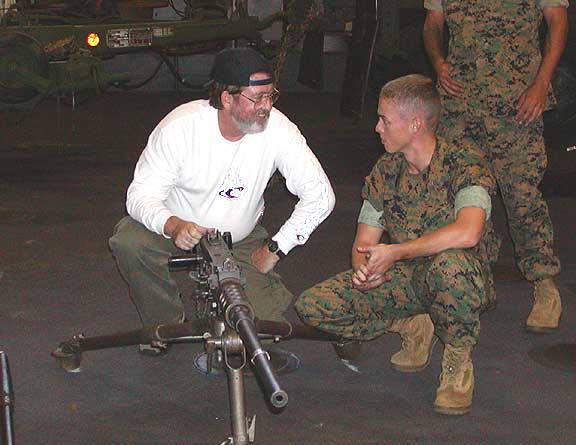 Asking one of the embarked Marines if he trusts an old "Squid" playing with a .50 Cal machine gun? Not to worry, it wasn't loaded!