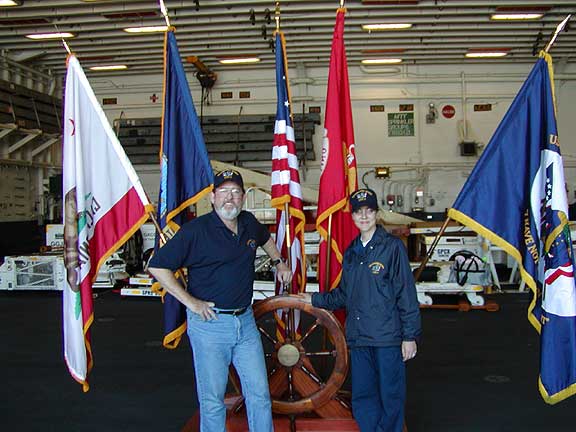 Bob Dollins & AG2 Cory Wittman on Quarterdeck of LHD-6 at the end of the Tiger Cruise, San Diego, CA