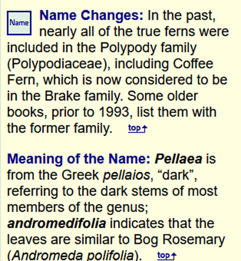 A patch of Coffee Fern along the Ben Overturff Trail. This less common fern gets its name for the "coffee bean" shape of its leaves. Click on photo for more information.