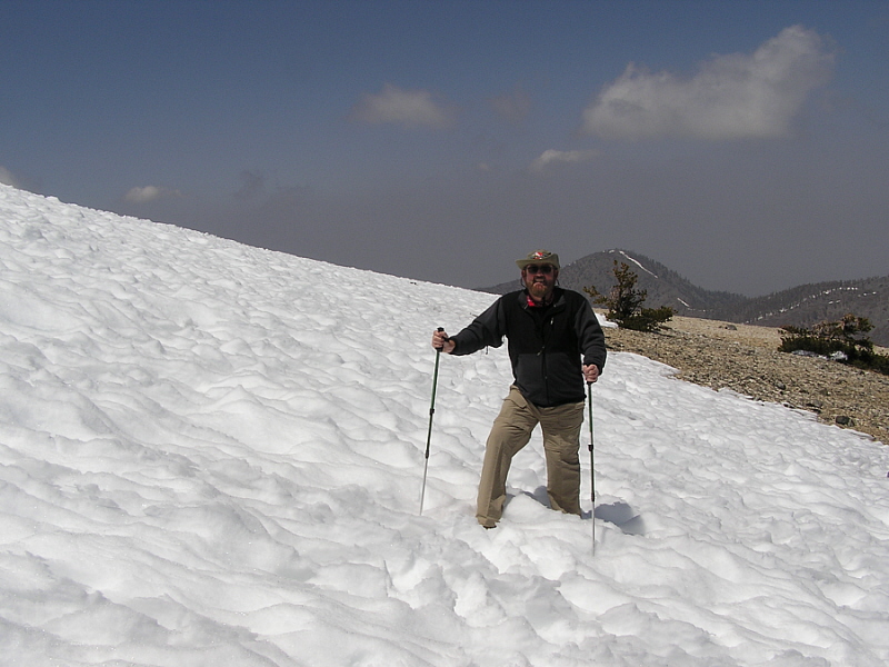 | Mt Baldy Trail: On the summit of 9,988 ft West Baldy. Photo by Bob Dollins © May 4,2008 |