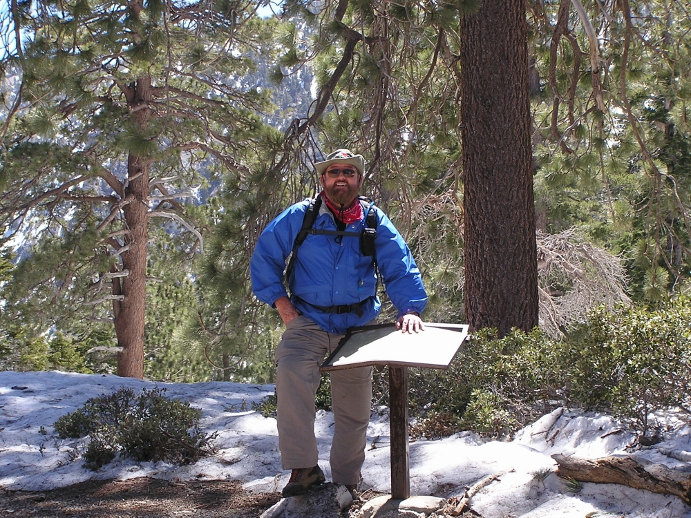 | Icehouse Canyon Trail: At the Saddle on a April 12, 2008 hike, standing behind trail info sign.