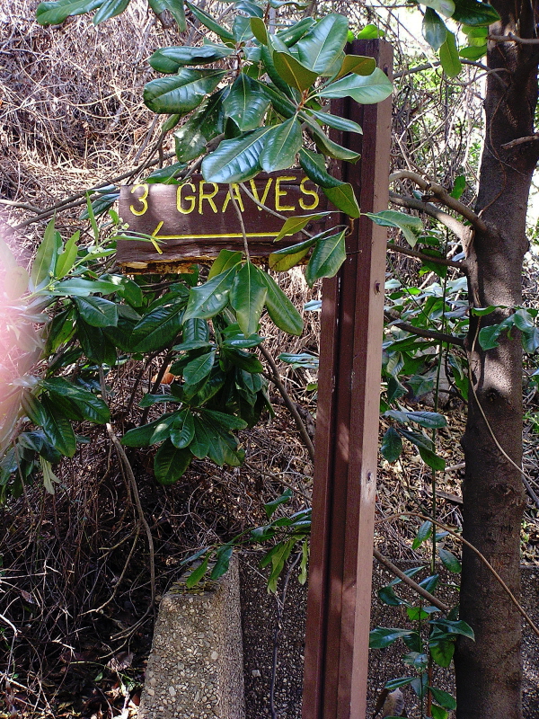 in Duarte and walked the entire distance from their canyon home to school and back every day, remembered a Duarte oldtimer. Tragedy - one of the saddest episodes in the long saga of the San Gabriel Mountains - struck the Rankins family in 1877. The oldest child, Albert, age 19, was apprenticed to a blacksmith in San Gabriel and somehow he contracted typhoid fever. He died after a short illness on March 6. While the family was still mourning, both girls, Estella, age 13, and Polly, age 16, came down with the dreaded disease. They died within a week of each other, on April 19 and 25. Heartbroken, their lives shattered, Mr. and Mrs. Rankins buried their three children on a little rise above their cabin and marked the grave with a triple tombstone that included the children's names, ages and dates of death engraved in marble. The bereaved parents and their sole surviving child, Ernest, then returned to Wisconsin. Years later, Ernest Rankins returned to the scene of his family's tragedy and removed his brother and sister's remains to a cemetery in Monrovia. Still later, they were again removed and taken to their final resting place, Mountain View Cemetery in Altadena. from "The San Gabriels" by John W. Robinson, p. 32 |